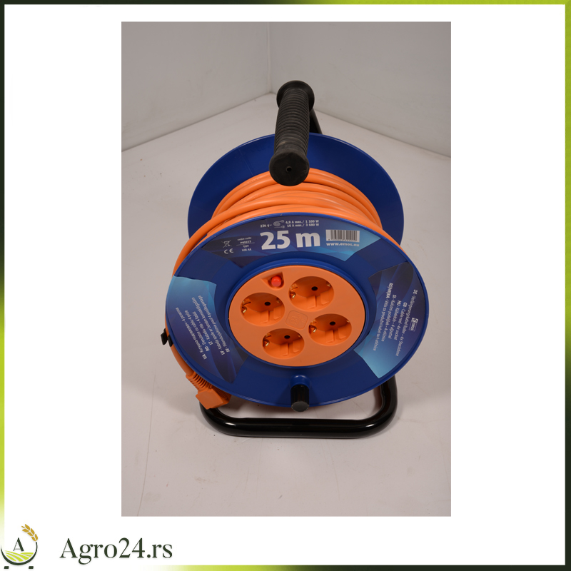 Produžni kabel na motalici 25m sa četiri utikača i prekidačem