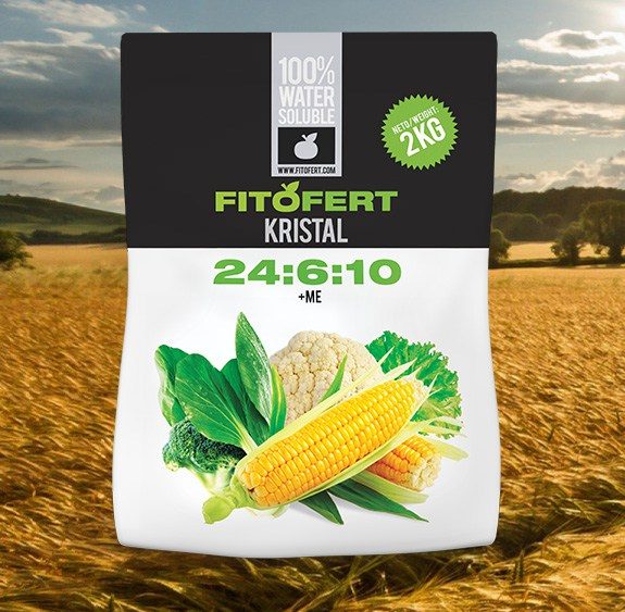 FitoFert Kristal 24:6:10 +ME je đubrivo sa viskom koncentracijom azota, pogodno za primenu kod biljaka sa velikom asimilacijom azota, u fazi intezivnog rasta. Takođe ga preporučujemo za folijarni tretman useva kukuruza prilikom herbicidnog tretiranja preparatima na bazi sulfonil uree. Ovim preparatom se u potpunosti neutrališe herbicidni stres i izbegava takozvano stopiranje kukuruza. Preparat je kompatibilan sa većinom sredstava za zaštitu bilja osim alkalnih, bakarnih preparata.